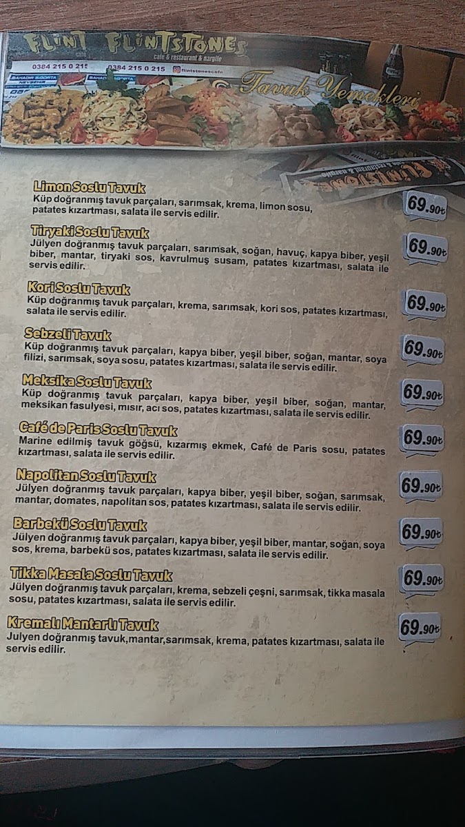 Flinstones Cafe Nargile Menu